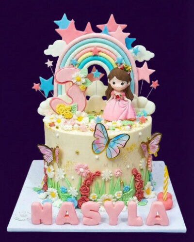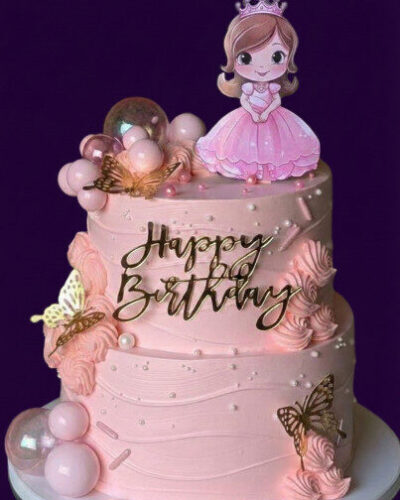 This beautiful two-story girl theme cake is designed to make birthdays extra special. Featuring soft colors, elegant detailing, and a charming design, it is perfect for medium-sized celebrations. Made with fresh ingredients and rich flavors, this cake serves 30 portions and creates a magical birthday moment for girls.
