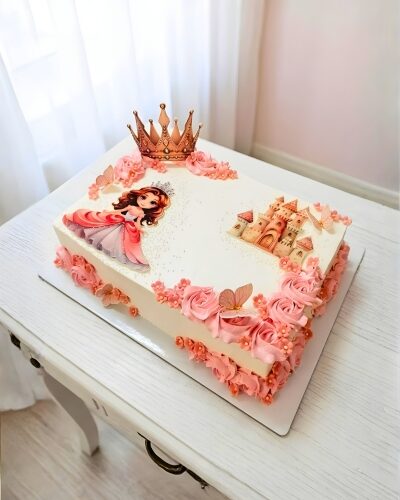 A cute and colorful butterfly theme cake designed for smaller birthday parties. Featuring playful butterfly elements and a soft, creamy texture, this cake is perfect for young girls. Serving 12 portions, it delivers both visual appeal and delicious taste.