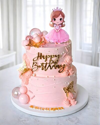 This rectangular girls theme cake is perfect for larger gatherings and school or family parties. Featuring a spacious design area with elegant detailing, it is both visually appealing and delicious. Serving 30 portions, this cake is ideal for sharing sweet moments with many guests.