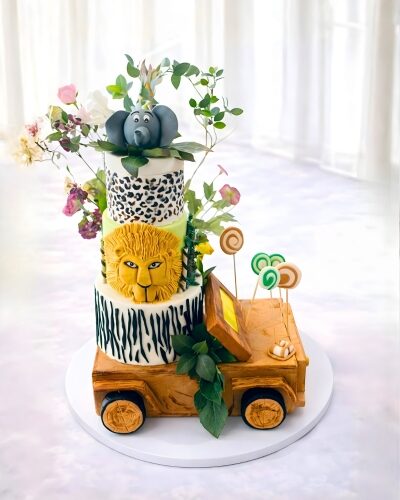 This two-story jungle theme cake is ideal for medium-sized celebrations. Featuring layered jungle designs, animal figures, and vibrant colors, it offers both visual appeal and delicious taste. Freshly prepared and beautifully finished, it makes birthdays extra special.
